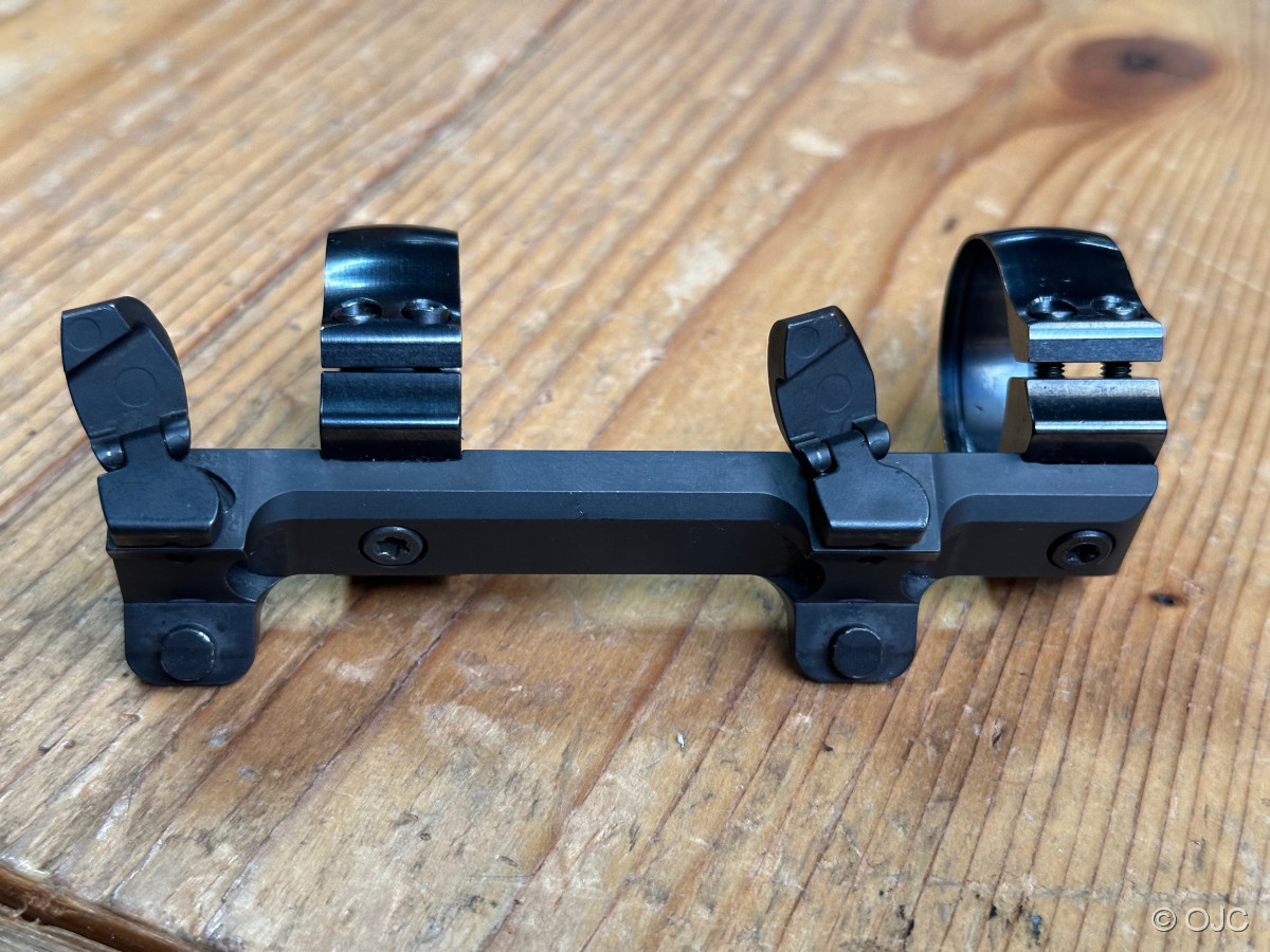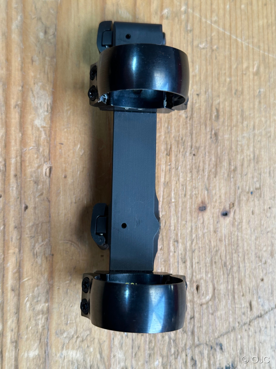 Sie bieten hier auf eine gebrauchte Sattelmontage des Herstellers Henneberger für Blaser Waffen (z.B. R8, R93, etc...) Mit 30mm Ringen. Siehe Fotos.