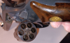 Sie bieten hier auf einen alten Reck Recolver im Kal. .380 Knall ( 9mm RK ), der Lauf ist noch "komplett offen" und ohne Sperre ( das war früher mal so ), der Stahl-Lauf hat eine durchgehende Bohrung von ca. 4mm und hat vorne "kein Gewinde" ! Von daher ist er nicht zum verschießen von Signalmunition geeignet ! Der Revolver gehörte meinem verstorbenen Schwiegervater und diese hat früher 9mm "Schwarzpulver" Patronen damit verschossen, das hat leider bleibende Spuren hinterlassen da nach Gebrauch nicht gleich sorgfältig gereinigt wurde. Leider hat der Revolver einen "DEFEKT", die Trommel transportiert manchmal nicht weiter und bleibt auf einer Stellung stehen, nach 5 - 6 mal Hahn spannen dreht sie dann plötzlich wieder weiter, ich bitte das beim Bieten zu beachten. Lauf, Trommel und sämtliche Funktionsteile sind aus Stahl, die Griffschalen sind aus Echtholz.