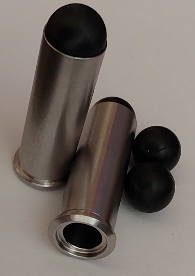 2 Stahlhülsen Kaliber 38 für 209 Zündhütchen CCI oder Cheddite, 30 mm lang, inkl. 6 Gummikugeln 9 mm