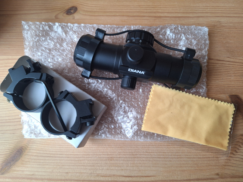 Verkaufe ein nie benutztes Diana Red Dot. Auf der Unterseite ist ein ca.1-2 mm minimaler Kratzer den man eigentlich fast nicht sieht.