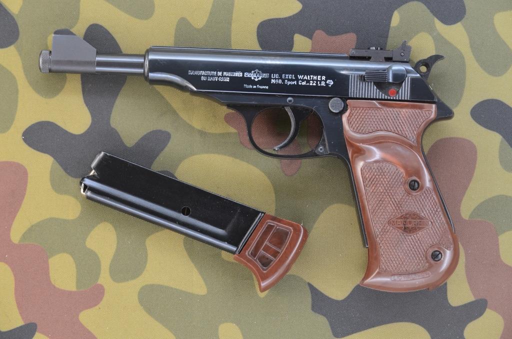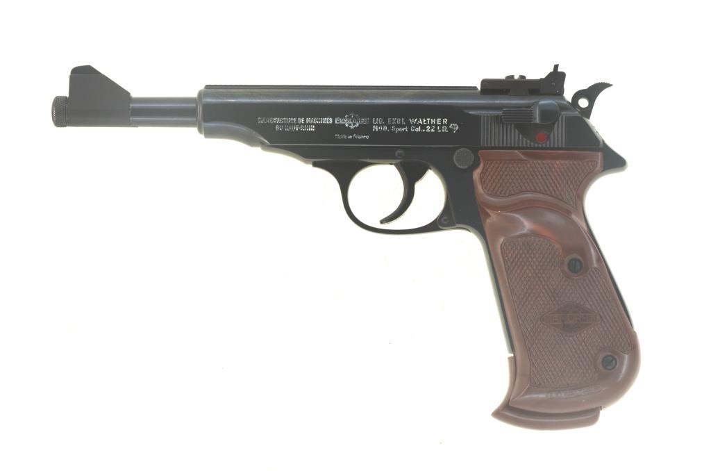 Nach dem 2. Weltkrieg wurden sowohl im Ulmer Walther-Werk als auch beim französischen Lizenznehmer Manurhin verschiedene „Sport-Ausführungen“ der klassischen Pistole Walther PP im Kaliber .22 lfB mit verlängerten Läufen (152 mm oder 204 mm) gefertigt. Diese Modelle waren mit Mikrometervisier, angedeutetem Formgriff und SA-Abzug erhältlich, gegen Aufpreis auch mit einem Laufgewicht. Um den Druckpunktabzug leichter einstellen zu können, erhielten diese Sportmodelle keinen Spannabzug; sie mussten daher vor der ersten Schussabgabe mit dem Daumen gespannt werden. Auf besonderen, allerdings nur selten geäußerten Kundenwunsch konnte allerdings dennoch ein Double-Action-Abzug eingebaut werden. Es gab zwei Versionen dieser stets mit allseits verstellbarer Mikrometer-Visierung ausgerüsteten Waffe: Das Standardmodell mit unten abgerundeten Griffschalen sowie eine ab Werk bereits mit Laufbeschwerung ausgestattete Variante mit eckigerem Magazinboden. Das Laufgewicht wog 160 Gramm und war später auch als nachrüstbares Zubehör erhältlich. Beide Versionen gab es wahlweise mit 230 oder 280 mm Gesamtlänge und in den Kalibern .22 l.r. oder .22 kurz.