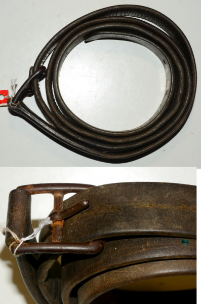 Alter Gewehrriemen aus dickem Kernleder, daher sicher militärisch, Breite knapp unter 3cm, Länge 1,51 m, es ist kein Gegenstück (der kurze Verstellriemen) dabei