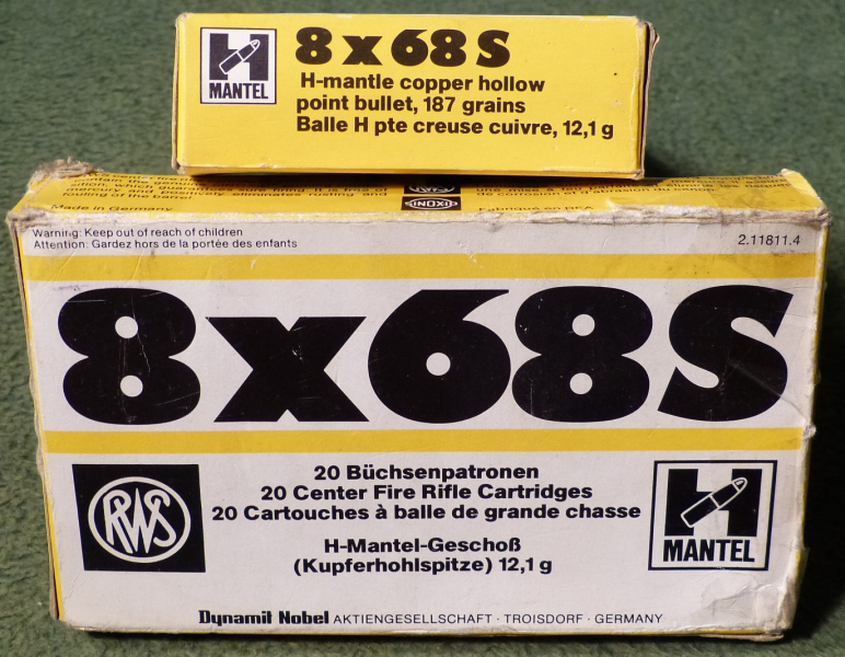 Wir bieten im Auftrag von Privat aus mehreren Nachläßen ohne Garantie, Gewährleistung, Sachmängelhaftung und Rücknahme RWS Patronen im Kaliber 8x68S mit dem 12,1 g. H-Mantelgeschoß an.