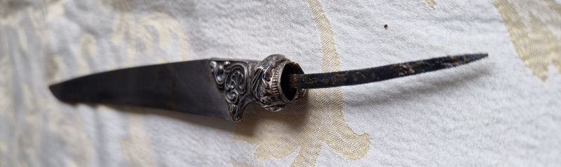 Silberne verzierte Griffzwinge (Griff fehlt).