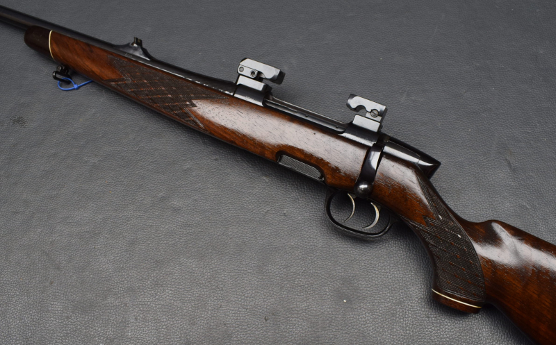 Lauf mit justierbarer Visierung, Zylinderverschluß, deutscher Stecher, seitliche Sicherung,
