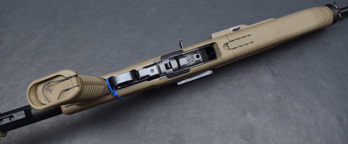 Druckpunktabzug, Sicherung am Abzugsbügel, herausnehmbares 5-Schuss Magazin. Kunststoffschaft von Tapco, verstellbar.