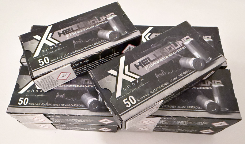 biete euch hier 500 Platzpatronen der Marke Shoxx Hellhound im Kaliber 9mm P.A.K. an. Die Kartuschen sind sehr stark geladen. Extrem lauter Knall und helles Mündungsfeuer.