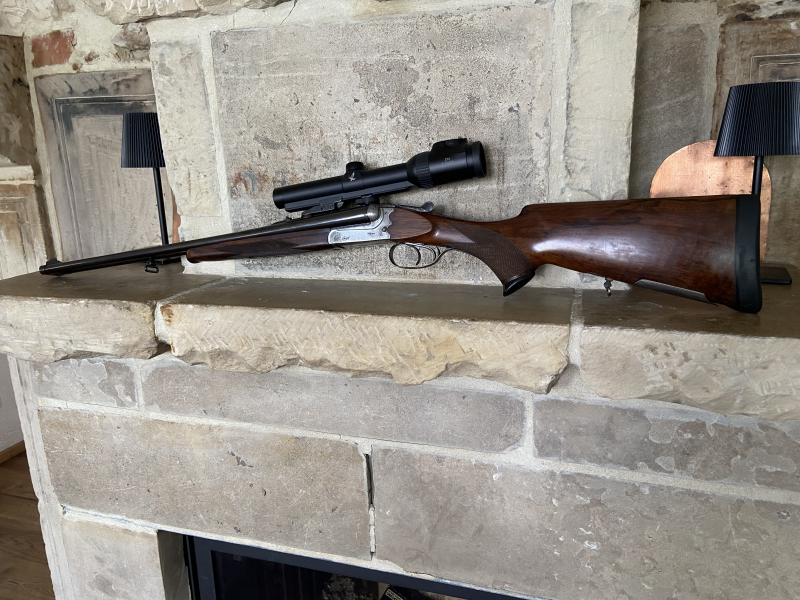Zum Verkauf steht eine außergewöhnlich seltene Doppelbüchse im Kaliber 8×57 IRS, gefertigt von Büchsenmachermeister Ferdinand Müller und nach dem deutschen Patent DE 10 2006 014 740 A1 hergestellt.
