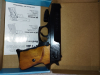 Schöne gepflegte Pistole im Kalieber 9mm P.A.K.Seltenes und begehrtes Sammlerstück.Die Waffe ist in der Originalverpackung mit Beschreibung und Abschußbecher für Signalmunition.Die Griffschalen sind aus Holz.