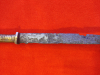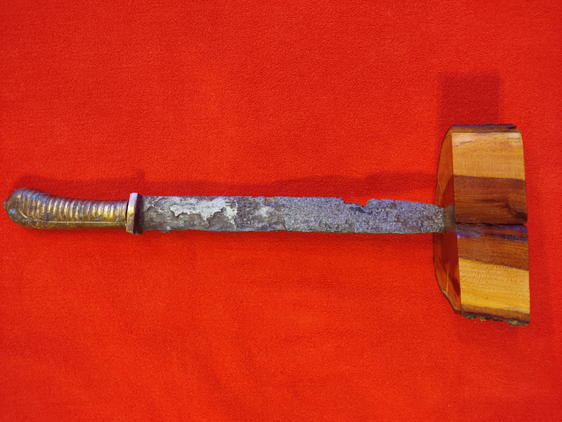 Bei diesem Dolch handel es sich um einen Bodenfund. Ich kann leider nicht zu 100 Prozent sagen um welchen es sich handelt. Aber nach Schätzung her handel es sich um einen antiken Bosniakendolch oder einem Yatagan. Diese Blankwaffen stammen ursprünglich aus dem Balkan, genauer gesagt aus der osmanischen Ära. Gesamtlänge: 37 cm, Klinkenlänge: 24 cm, Klingenbreite: 3 cm. Der Dolch wurde sorgfältig gereinigt inklusive Standholz.