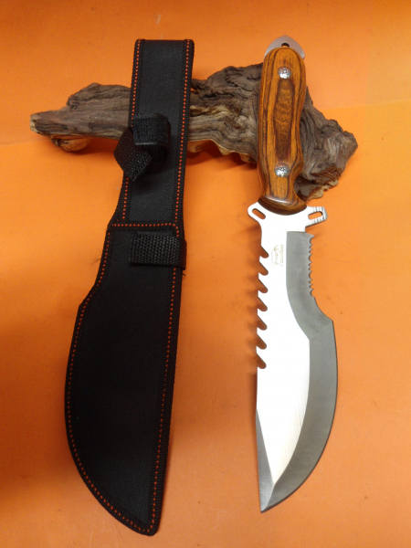 sehr schön gearbeitetes Messer mit großer und aussergewöhnlicher Klinge mit teilweiser scharfer Sägezahnung