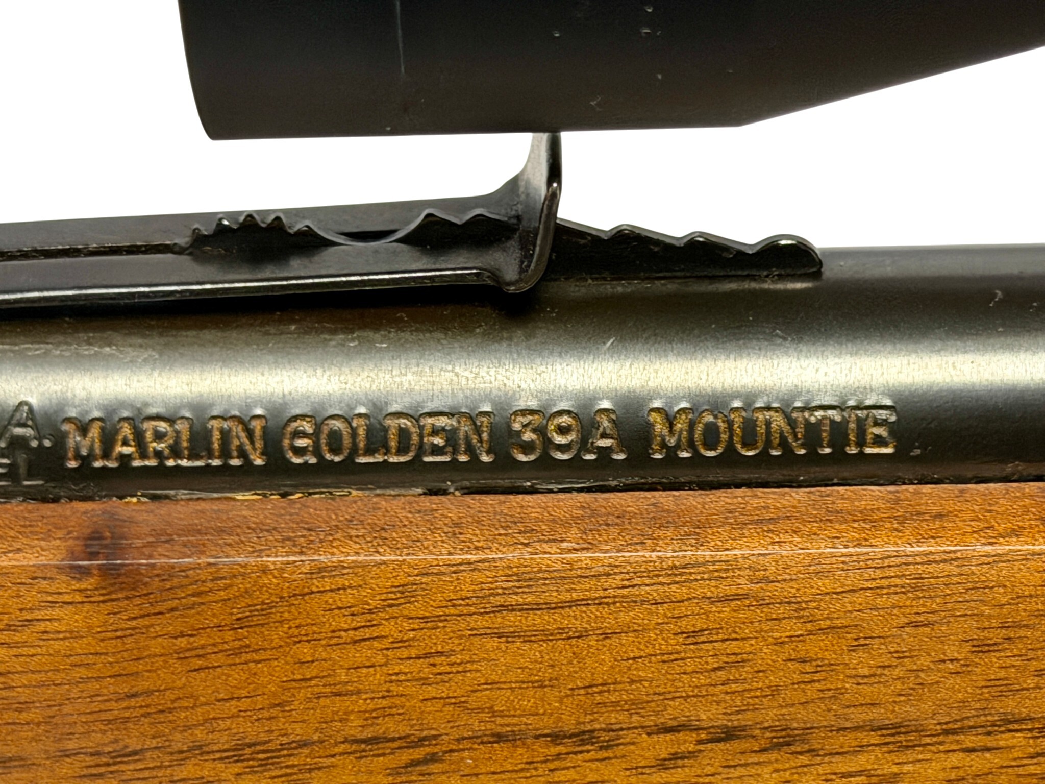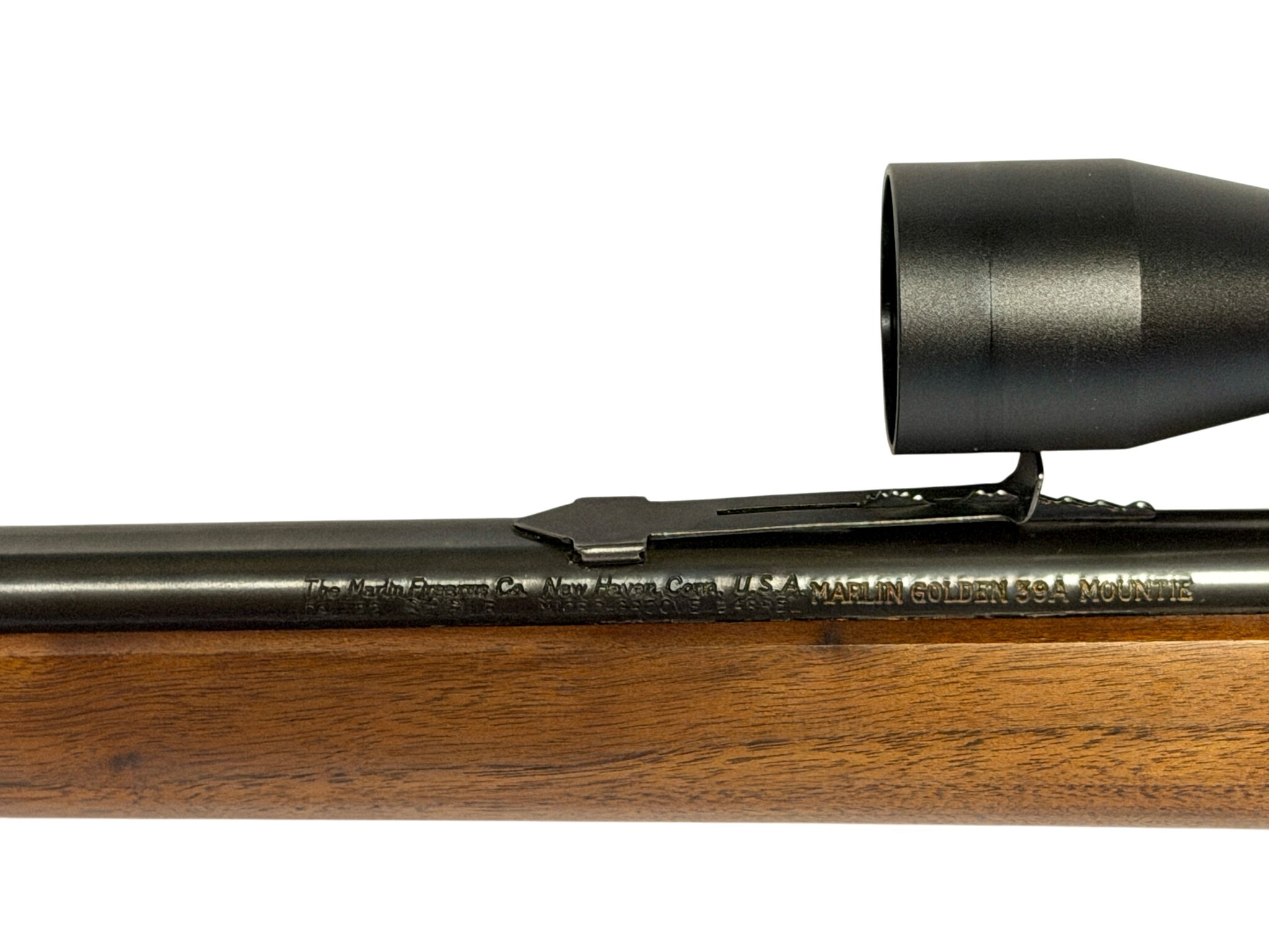 Wir bieten hier im Kundenauftrag eine sehr gut erhaltene Unterhebelrepetierbüchse aus dem Hause Marlin USA, Modell Golden 39A Mountieim Kaliber .22LRan.