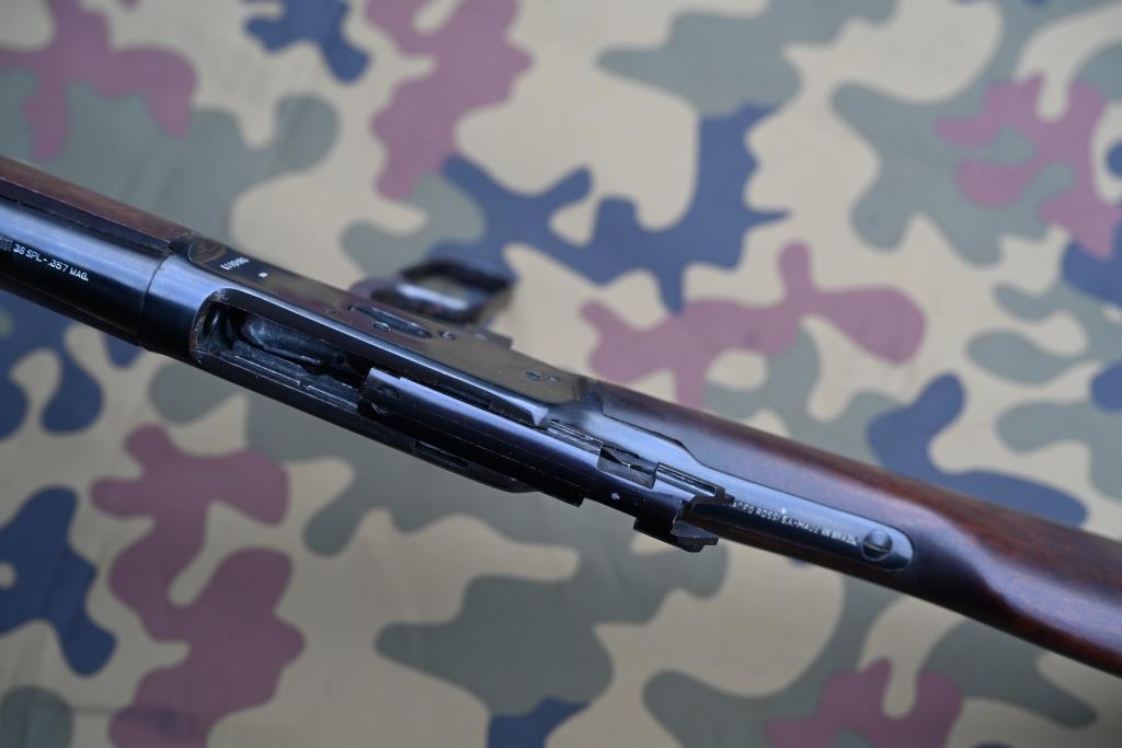Optisch und technisch sehr schöner Gesamteindruck, wenig benutzte Unterhebelrepetierbüchse im Winchester-Look, tadelloser naturbelassener, dunkelbrauner Schaft, ohne Firnis, Finish rundum tiptop erhalten, mit harmlosen, nur wenigen Gebrauchsspuren.