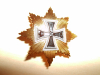 Miniaturabzeichen: Das Eiserne Kreuz mit goldenen Strahlen „Blücherstern“, mit Aufhänger versehen. Göde Abzeichen ohne Zertifikat. Replika Sammler- oder Museumsausfertigung. Leicht gewölbte Form. Im Eisernen Kreuz oben eine Krone, in der Mitte ein „W“ und unten „1914“. Gösse 4 x 4 cm. Guter optischer Zustand.