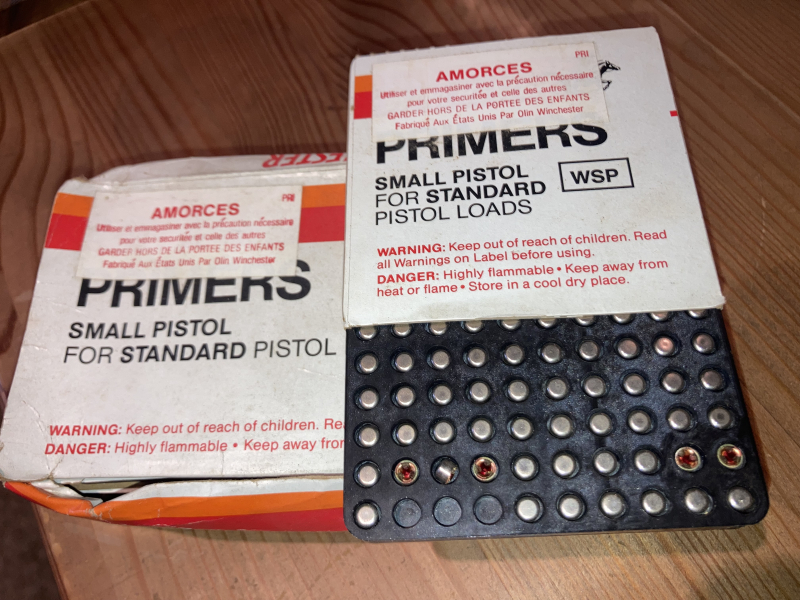 597 stück small pistol zündhütchen von winchester trocken gelagert aus einem nachlass.