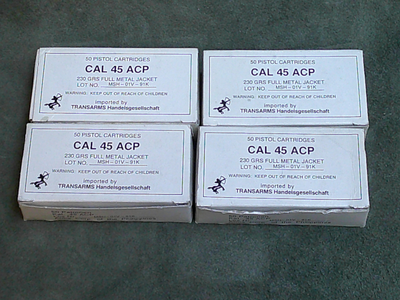 200 Patronen Kal. .45 ACP Transarms, 230 grs, Full Metal Jacket (Vollmantel)
