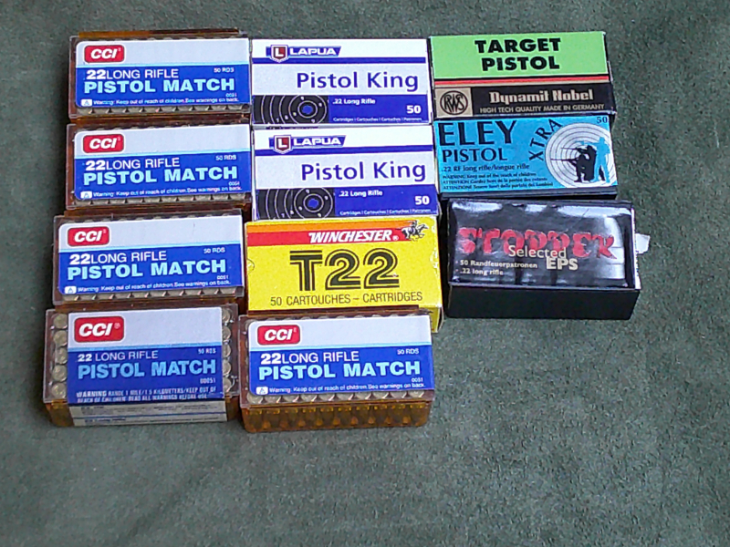 Konvolut 550 Patronen Kal. .22lr (250 CCI Pistol Match - 100 Lapua Pistol King - 50 Winchester T 22 - 50 Eley Pistol XTRA-50 Stopper Selected EPS- RWS Target Pistol