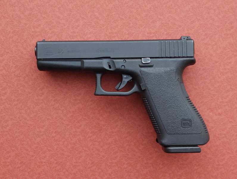 Eine Pistole von Hersteller "Glock", Mod. 20 / Kal.: 10mm Auto / sehr guter Zustand, nur wenig oberflächige Spuren vom jagdlichen Führen / Lauflänge 150mm / die Züge im Lauf sind blank /