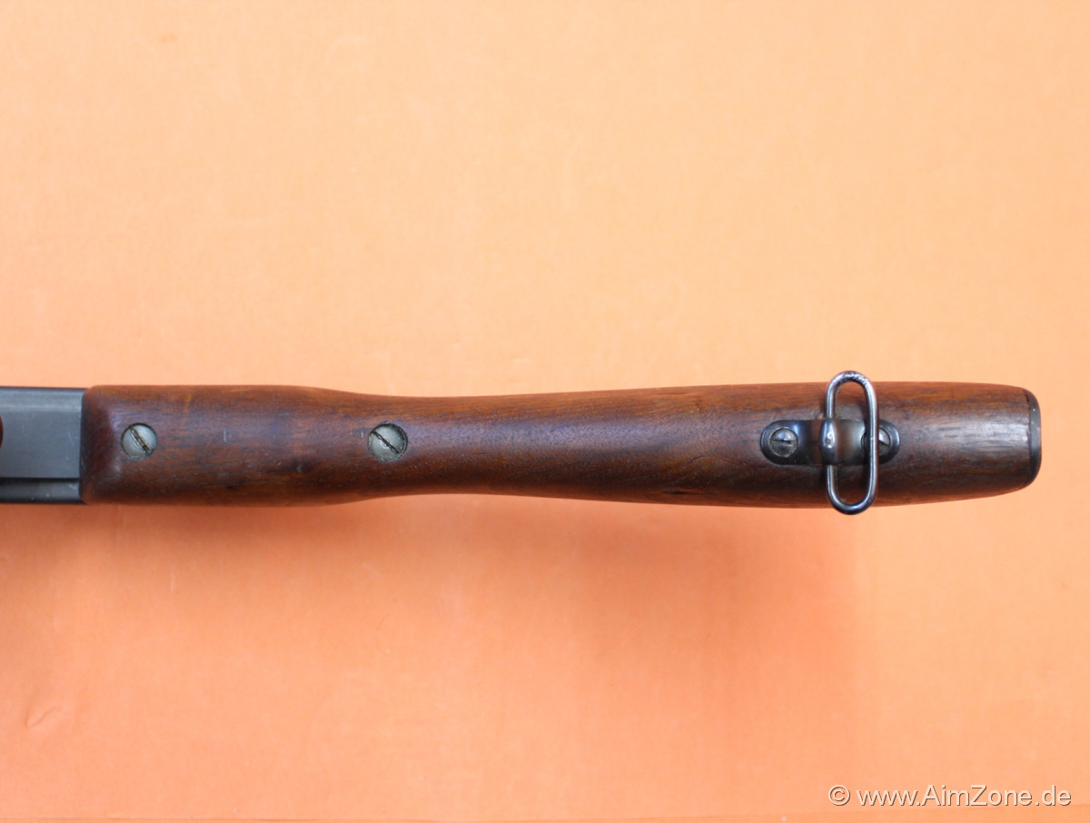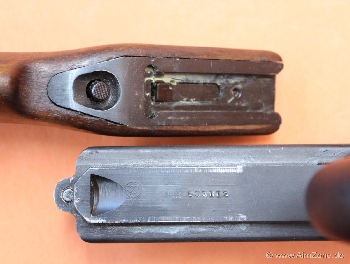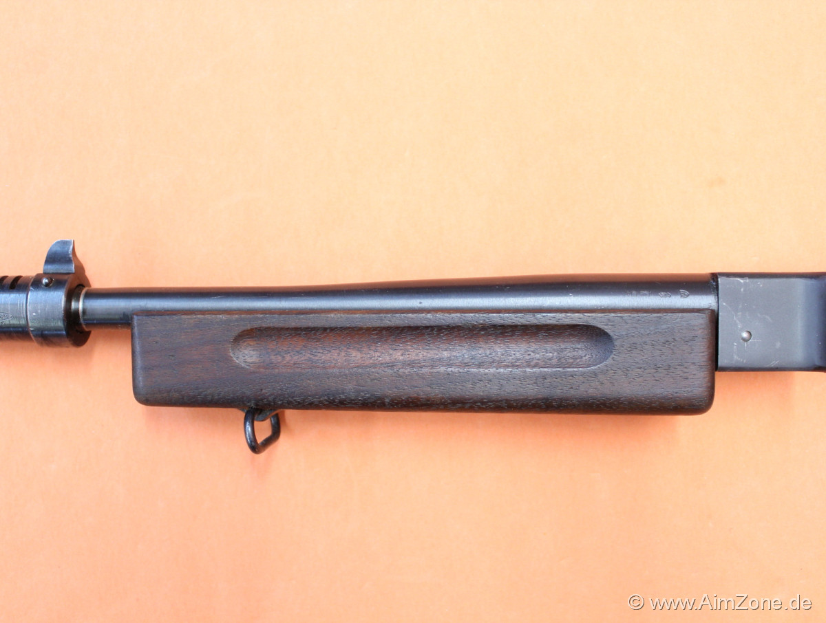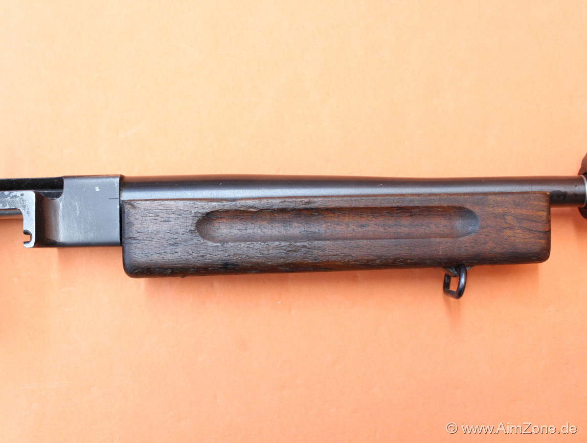 27cm Lauf OHNE Kühlrippen, mit Cutts Mündungsbremse, gefrästes Systemgehäuse mit feststehendem Lyman-Visier (L Battle Sight), zuschiessender Verschluss, Holz-Handschutz/ -Pistolengriff/ -Schaft (abnehmbar), OHNE Magazin. Ursprünglich hergestellt bei Savage Arms. Umbau zur zivilen Selbstladebüchse bei LuxDefTec unter Beibehaltung von originalem Lauf und Verschluss. Gebraucht-/ Sammlerwaffe (ohne Zusicherung von mangelfreier Funktion/ Präzision). Maklergeschäft, Verkauf im Kundenauftrag! *Differenzbesteuerter Artikel nach §25a UStG*