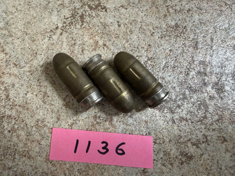 Sie bieten hier auf 3 Stück Patronen .45 Auto / .45 ACP Exerzierpatronen von Huck Metallwaren Nürnberg- hergestellt für die frühe Bundeswehr. Die Patronen befinden sich im guten Zustand mit Gebrauchsspuren, siehe Foto. Die Patronen frei von gefährlichen Stoffen.