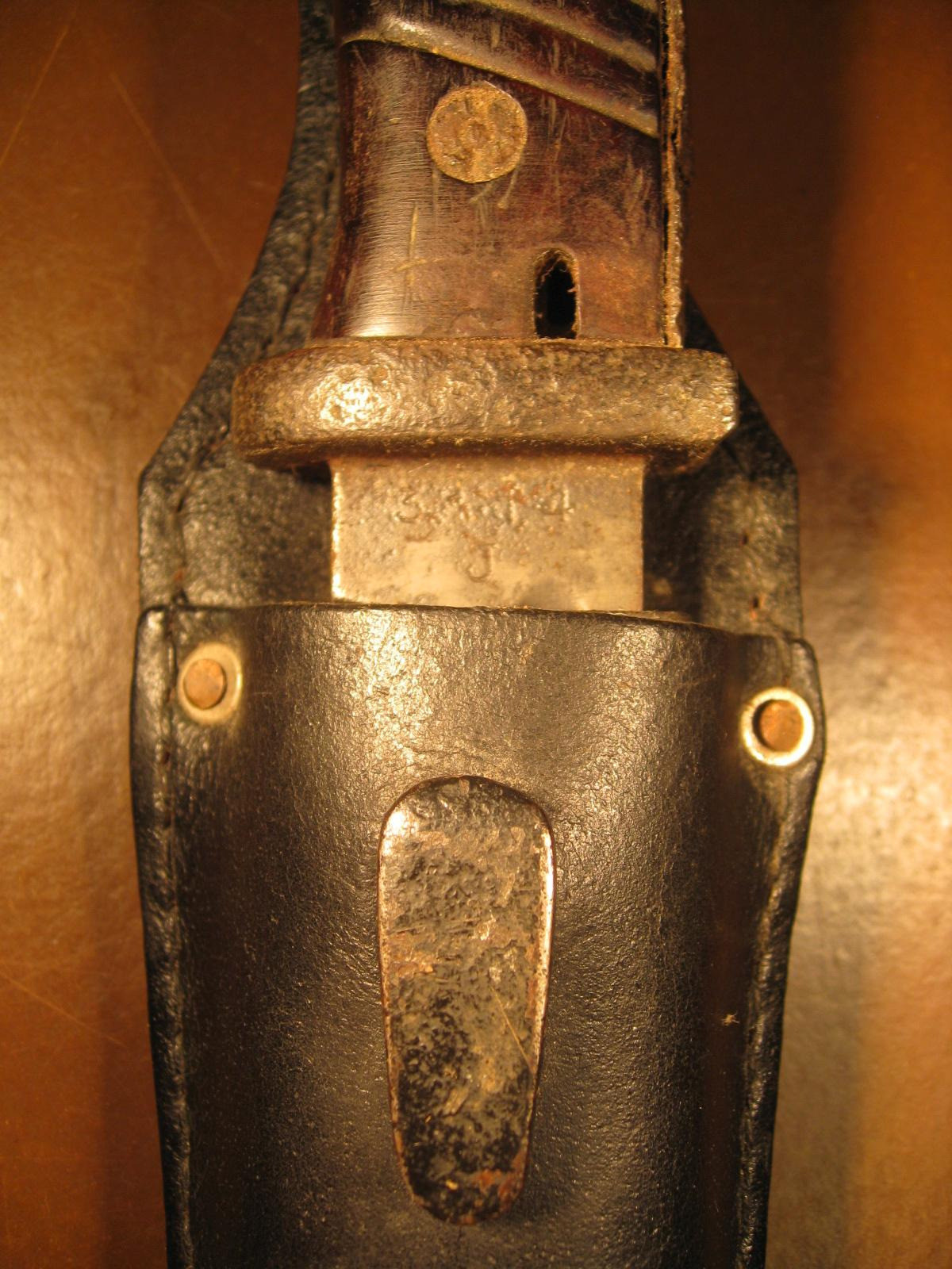 Ich habe die Scheide nicht aus der SG-Tasche entfernt. War mir zu riskant. Deshalb kann ich nicht sagen ob alles nummerngleich ist. Der Besitzer sagte mir damals aber, dass das Stück immer im Besitz der Familie war.
