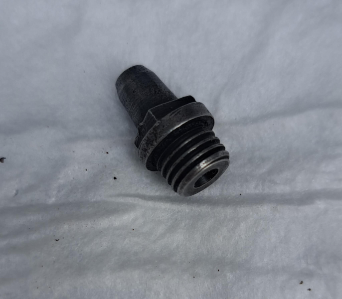 Zündpiston, Original, für Musketen. Höhe: ca. 17 mm, Gewinde aussen gemessen: 8,3 mm, Gewinde auf 5,7 mm geschnitten . Kein Feingewinde, Herkunft unbekannt.