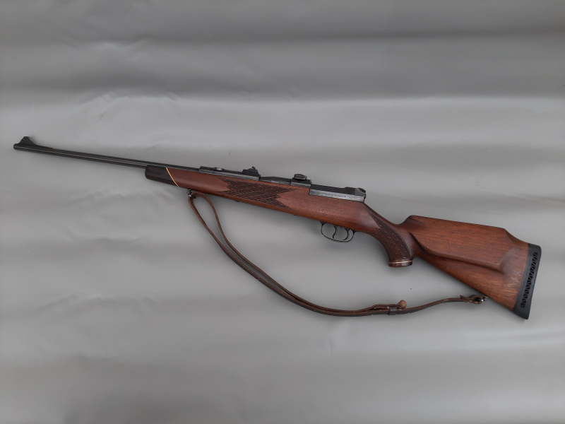 Die Waffe ist gut erhalten und vom Zustand her, wie auf den Fotos zu sehen. Die Mauser 66S hat den bewährten, funktionssicheren und witterungsbeständigen Zylinder-Teleskopverschluss mit Mauser-Kastenmagazin 3+1 Schuss und deutschem Stecher. Zum Gewehr gehören noch die hintere ZF Halterung sowie der vordere Ring für die montierte Suhler Einhakmontage. Der vordere Ring hat einen Innendurchmesser von 62 mm. Ein Zielfernrohr gehört NICHT zum Verkaufsumfang.