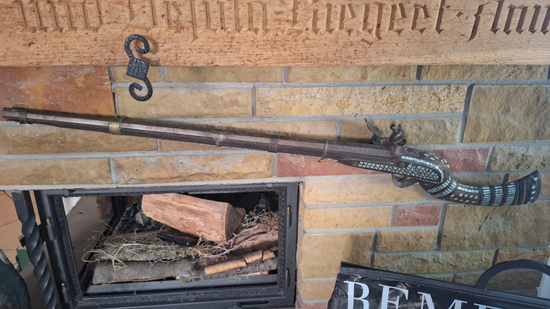hier biete ich aus Nachlass meines Schwiegervaters ein Jezail Gewehr, welches ca 50 Jahre als Deko über dem Kamin gehangen hat.