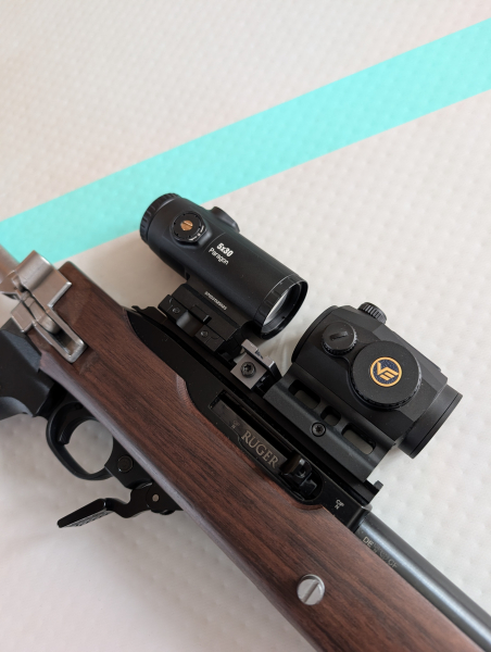 Auf dem Foto ist die Kombi montiert auf meiner Ruger zu sehen. Die Waffe ist natürlich nicht Bestandteil der Auktion.