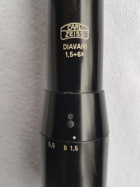 Zum Verkauf steht ein Zeiss Zielfernrohr Diavari 1,5-6 x 36 mit Schiene.