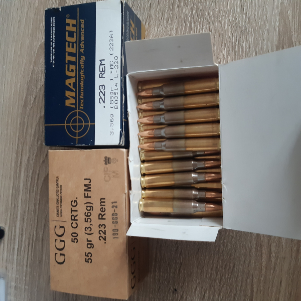 Sie kaufen 135 Stück Patronen .223 Rem / 55 grain 3,56 Gramm FMJ mit CIP, 85 Stück GGG und 50 Stück Magtech. Dies ist ein Privatverkauf keine Rücknahme oder Garantie. Zum Versand wird Ihre E-Mail angegeben, wegen der Zustellung, wenn Sie damit nicht einverstanden sind bitte nicht bieten.