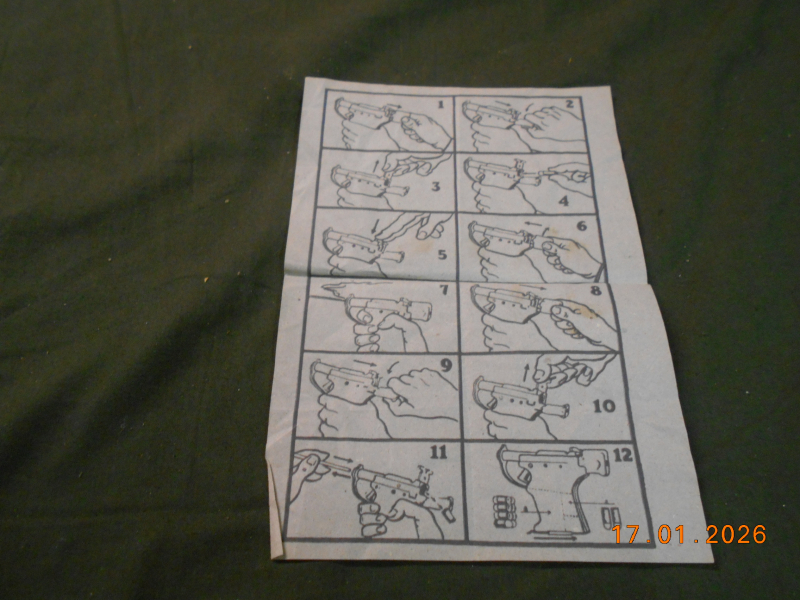 Selten! Bedienungsanleitung der Liberator Pistole aus dem WK2; Diese Pistolen waren seinerzeit von den USA sehr einfach in Blechprägetechnik gebaut worden; und dies sogar in sehr großer Stückzahl. Die Liberator Pistole (auch FP45 genannt) war in einem Karton mit dieser Anleitung verpackt und im Griffstück waren 10 Patronen verstaut. Und so, im Karton, wurden diese einfachen Pistolen in von Deutschen besetzten Gebieten mittels Flugzeug abgeworfen. Hier sollte erreicht werden, dass die Bevölkerung dieses besetzten Gebietes, zu einer Schußwaffe kam. So konnte ein Widerstand gebildet werden der die deutschen Besatzungstruppen bekämpfen konnte.