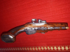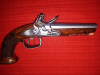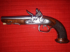 Doppelläufige Steinschlosspistole von "Hazzel.C" A Liege". ELG Stempel auf dem Linken Lauf. Länge:28 cm, Lauflänge: 14,5 cm, Cal. 14,5 mm. Die Läufe sind innen blank und unbeschädigt. Die Zündlöcher sind frei. Beide Schlösser funktionieren gut. Die rechte Batterie funkt nur noch schwach. Die Pistole ist im Originalzustand und rostfrei !