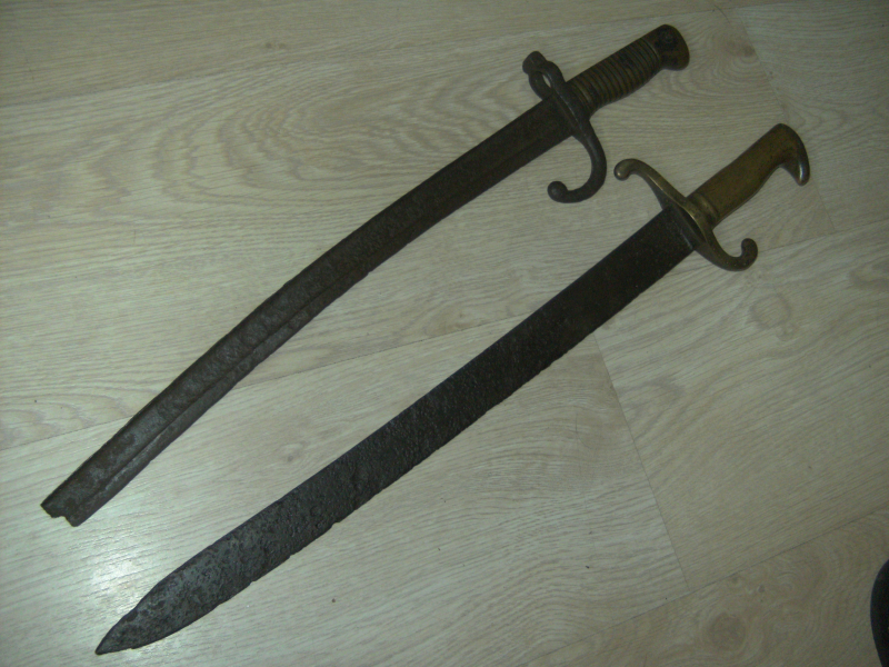 Biete Faschinenmesser und Bajonett ohne Spitze. Rostnarbig. Hersteller ?. Von Privat...