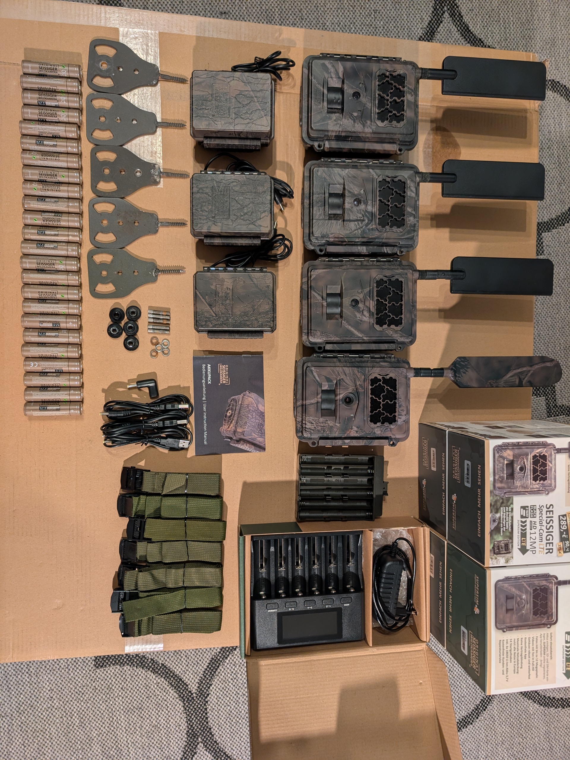Seissiger Wildkameras Special Cam LTE Supersim-Edition mit viel Zubehör (Akkupacks, Baumhalterungen, Baumgurte, Ladegerät, 24 Seissiger Akkus)
