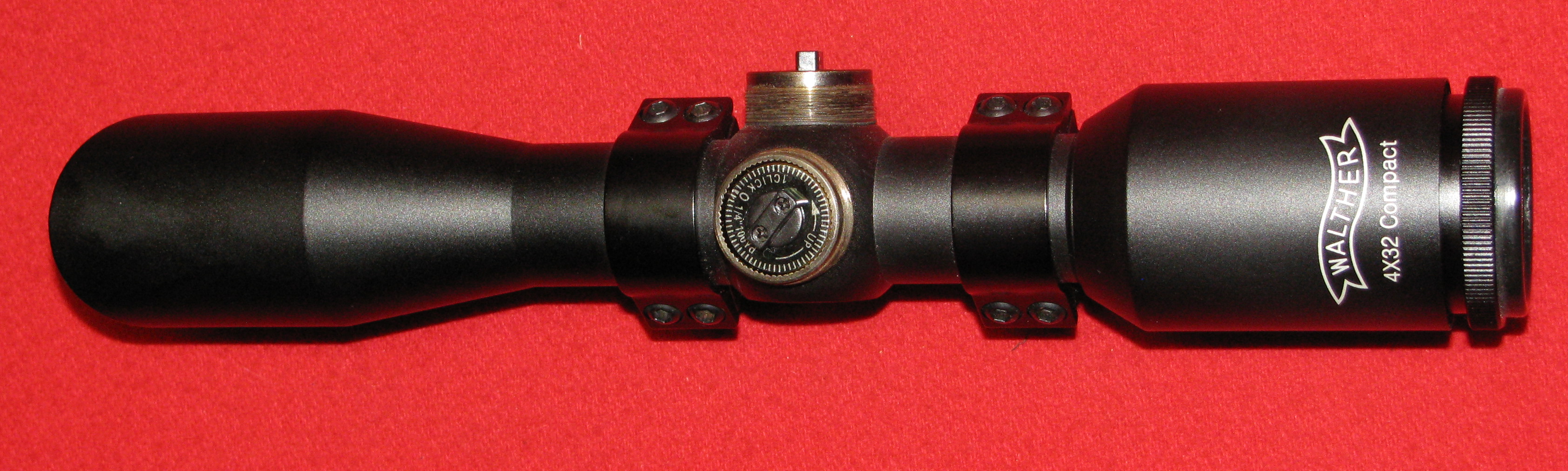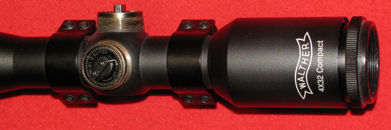 Zum Verkauf kommt ein ZF / Zielfernrohr, ein WALTHER 4 x 32 Compact mit dem Absehen Duplex und Haltepunkten