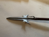 antiker originaler Sponton mit Reißhaken , der fand wohl als Luntenspieß Verwendung, eingeschäftete Federn , der Schaft leider auf ca 1 Meter gekürzt aber der Rest des Schaftes ist vorhanden , kann vermutlich repariert werden und wird mit verschickt