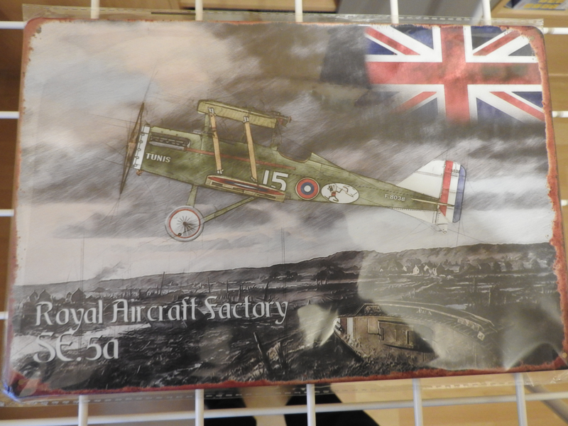 Biete Blech-Werbeschild der brittischen Royal Aircraft Factory für den Doppeldecker SE.5a. Das Schild hat die Maße 20 x 30 cm ,hat gerundete Ecken mit Bohrungen zur Befestigung. Alter und Herkunft sind mir unbekannt. Herstellung wahrscheinlich im Siebdruckverfahren