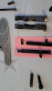 Eines der Ersatzteile (linke Spannstange) ist defekt und liegt erkennbar defekt (gebrochen) auf den Fotos auf einem roten Stück Papier. Ansonsten sind alle Teile (auch die Schlagbolzen) bei Zerlegung 100% funktionsfähig gewesen.