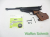 Sie bieten auf eine Match-Luftpistole Feinwerkbau Mod.65 im Kaliber 4,5mm in F-Ausführung. Komplett überholt (neue Federn und Dichtungen). Rückstoßfreie Feder-Druckluftpistole mit Seitenspanner. 185mm Lauflänge mit verstellbarer Visierung, fein einstellbarer Matchabzug, Nußbaumholz-Matchgriffschalen mit Daumenauflage und verstellbarer Handkantenauflage für Rechtsschützen. Guter Zustand!!!