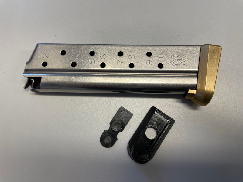 Magazin inkl. Original Base Plate und Federplatte und Messing Magazinboden mit Messing Federplatte.