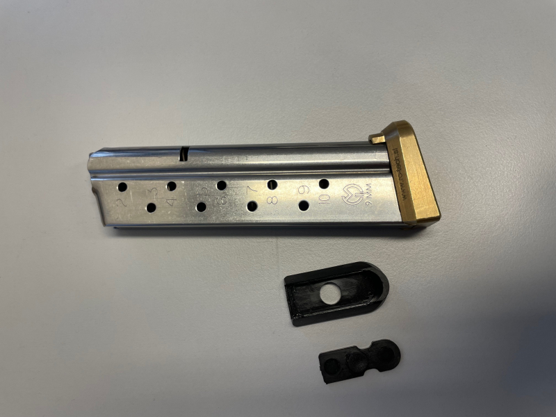 Magazin inkl. Original Base Plate und Federplatte und Messing Magazinboden mit Messing Federplatte.