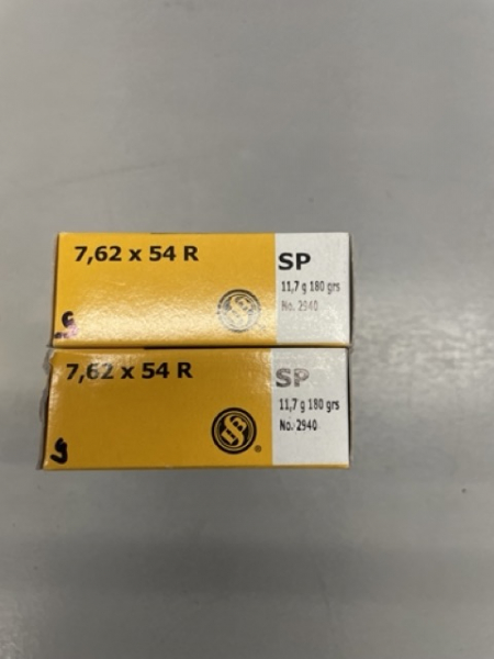 Biete 2 Packungen ( 40 Stück) S & B Jagdkugel Patronen 7,62 X54R, 11,7 Gramm (180 grs) Teilmantel.