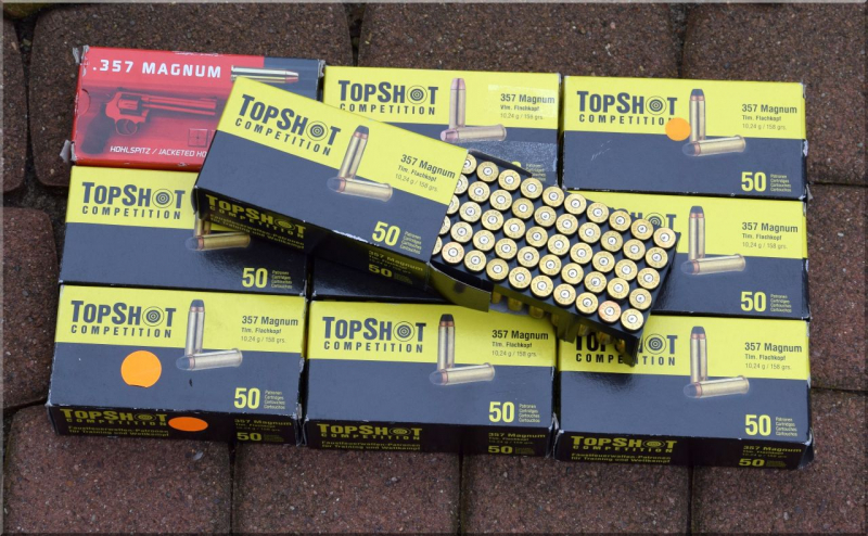 > 500 Stück insgesamt, nur ein Mal abgefeuert, alles seinerzeit neu gekaufte Fabrikware. 9 Packungen Top Shot Competition, gestempelt mit "TSC" und 1 Packung GECO, wobei eine Hülse darin auch von TOP SHOT ist, also 49x GECO und 1x TOP SHOT.