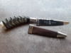 Verkaufe aus Sammlung, neuwertigen Jagdnicker aus Solinger Qualitätsschmiede. Das Modell hat eine 10cm lange, polierte Klinge aus Molybdänstahl. Der Griff ist aus Antilopenhorn (vermutlich Impala), er liegt sehr schmeichelnd in der Hand. Das Messer verfügt über eine typische lederbezogene Scheide. Auf der linken Klingenseite befindet sich ein Abbildnis von König Ludwig II von Bayern, welches in die Klinge geätzt und koloriert wurde. Ein zünftiger Nicker für den Kenner und Liebhaber. Dies ist ein Privatverkauf daher keine Gewährleistung oder Rücknahme meinerseits möglich. Bitte beachten Sie dies!
