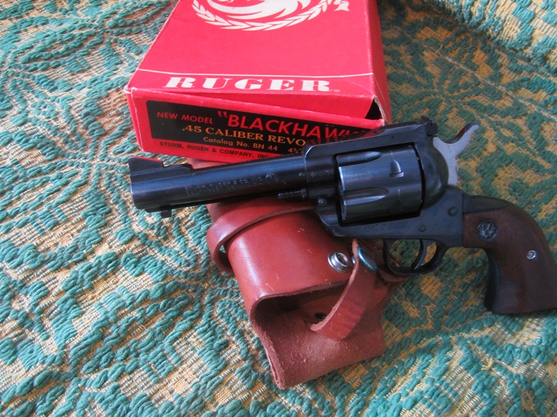 Biete I.A.eines alten Jagdkollegen Revolver Cal 45 mit Wechseltrommel(für Pistolen- und Revolvermunition) Ruger Black Hawk new Model in gepflegtem Zustand(für Wiederlader Matrize vorhanden VB).Nur an EWB