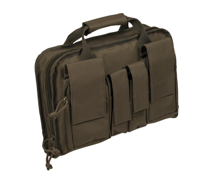 TACTICAL PISTOLEN Tasche oliv Obermaterial: 100% Polyester, Polyvinylchlorid beschichtet Futter: 100% Polyester Polsterung: EVA Schaumstoff Maße: 34 x 9 x 22 cm Gewicht: 560 g