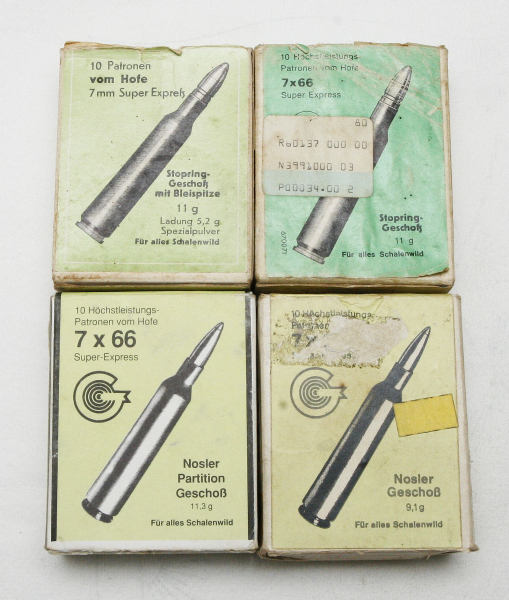 7x66 vom Hofe 23 leere original Patronen Schachteln , sehr selten