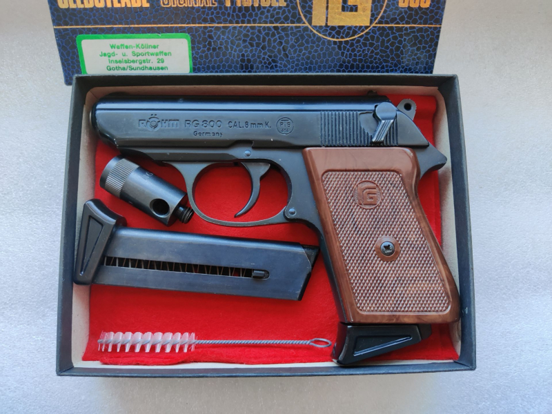 Aus Nachlass abzugeben eine Signalpistole von Röhm, PPK Nachbau. Beschuss KD also 1993. 2´tes Magazin, Abschussbecher und Bürste. Schaut Innen wenig benutzt aus. In der OVP die Anleitung fehlt leider.