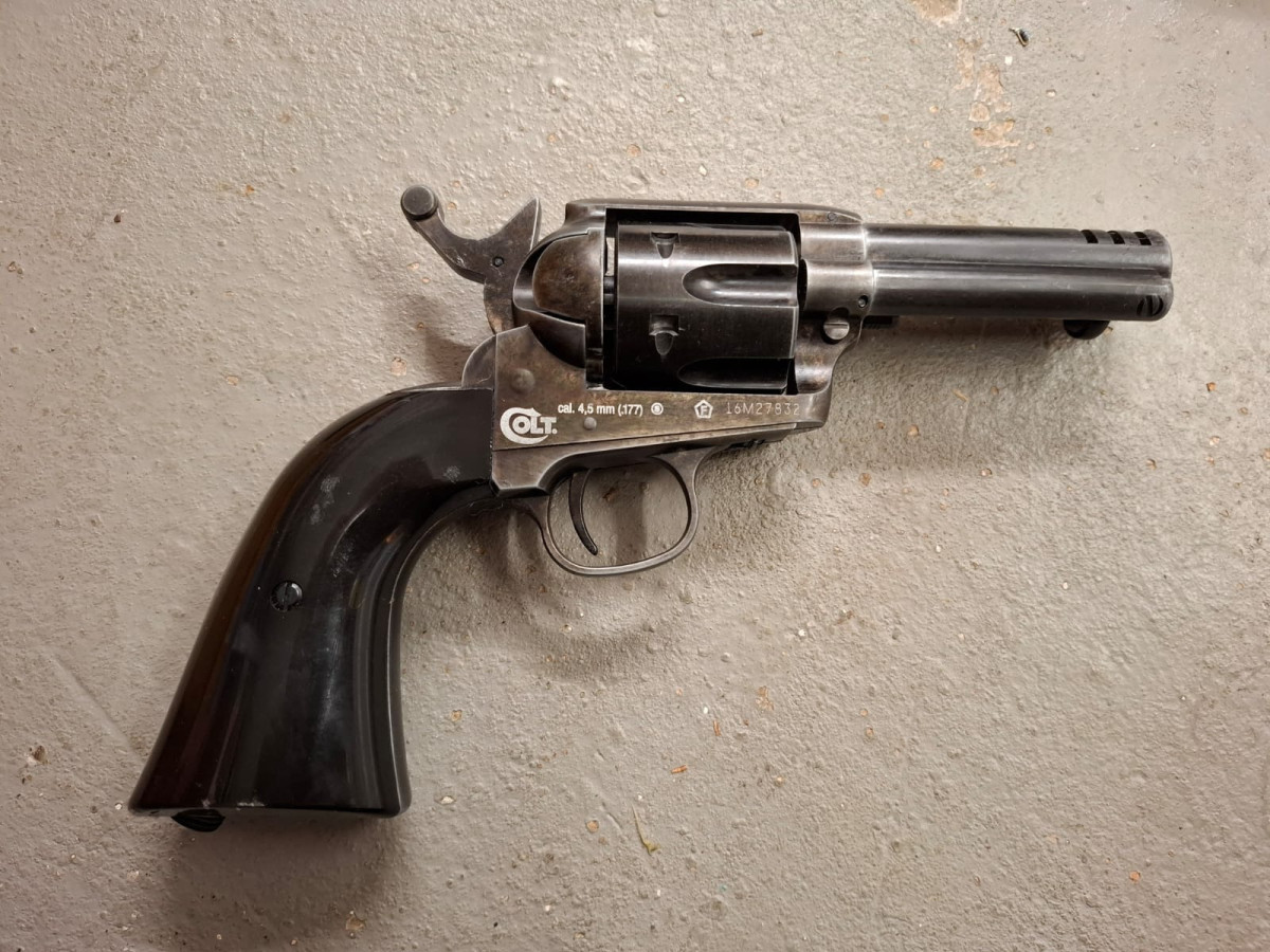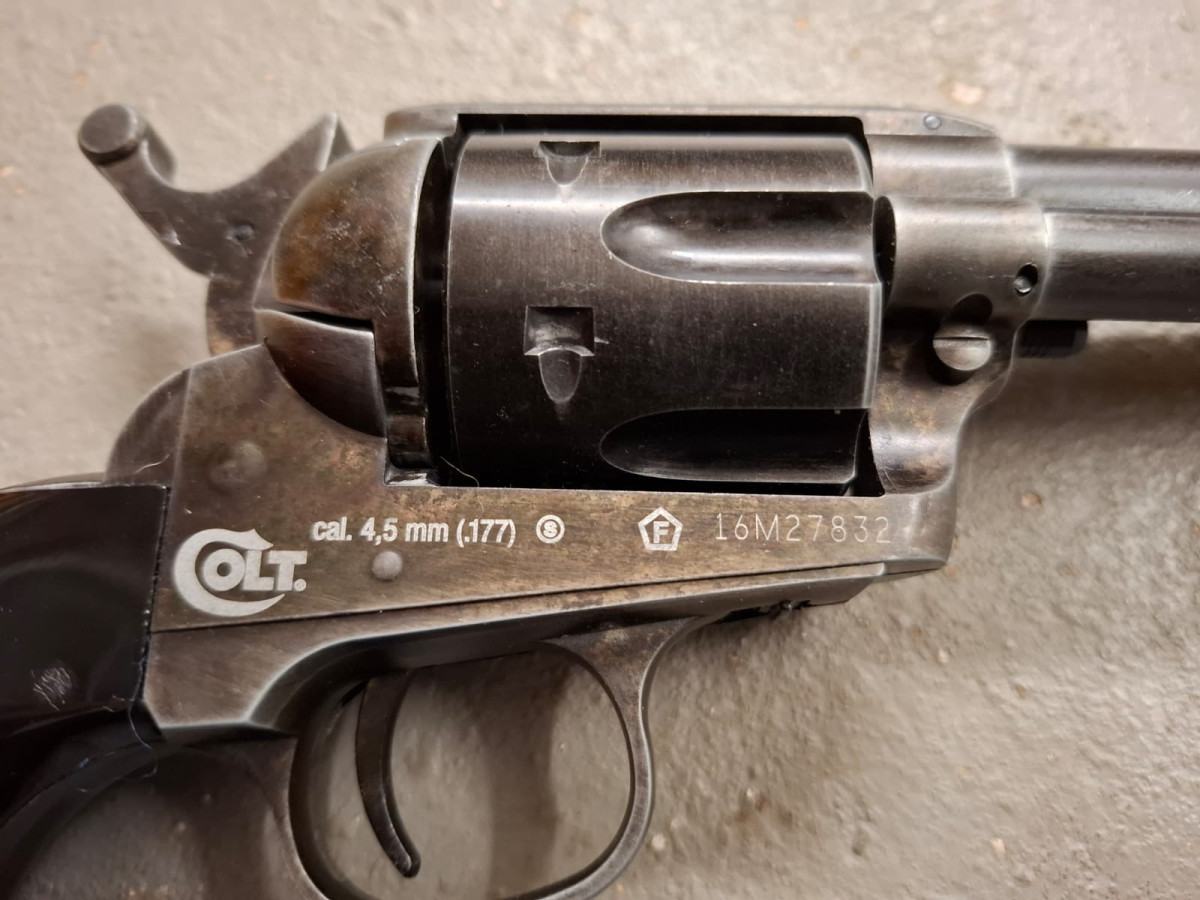 Umarex Colt CO2 Revolver mit 1 LadapatroneE Vollmetall Version, sehr realistisch, bisher vermutlich noch ungeschossen, stammt aus Sammlernachlass, Antik-Finish used look
